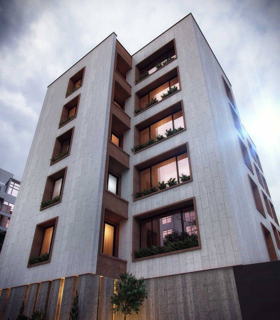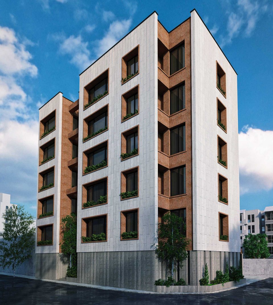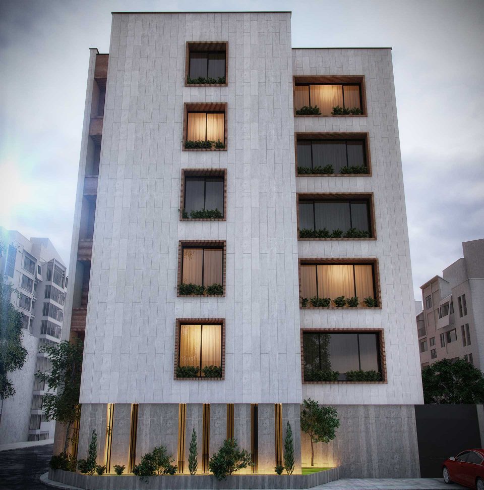 This project started in 2016 and has lasted for 30 months. The area of this project has access from the main roads. By the request of our client, each floor has 3 residential units with 3 different types. For optimal use of light in all spaces, the placement of units was designed to have natural light from the main elevation. Beneficial to prevent the use of voids to supply light for units. We employed different breaks in the facade so that the units have direct natural light. The white surface as the external frame in contrast with the break was used for homogenizing and depth of the facade. Moreover, the gap is used for an inviting feeling in the entrance and lobby. Also, we implied zoning for parking lots for maximum use. In consequence, we were able to benefit from the natural light and indoor green leaf plants to bring nature into it.