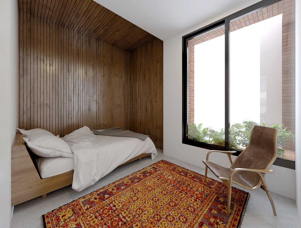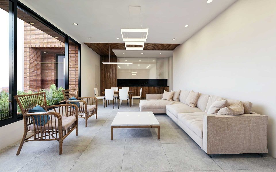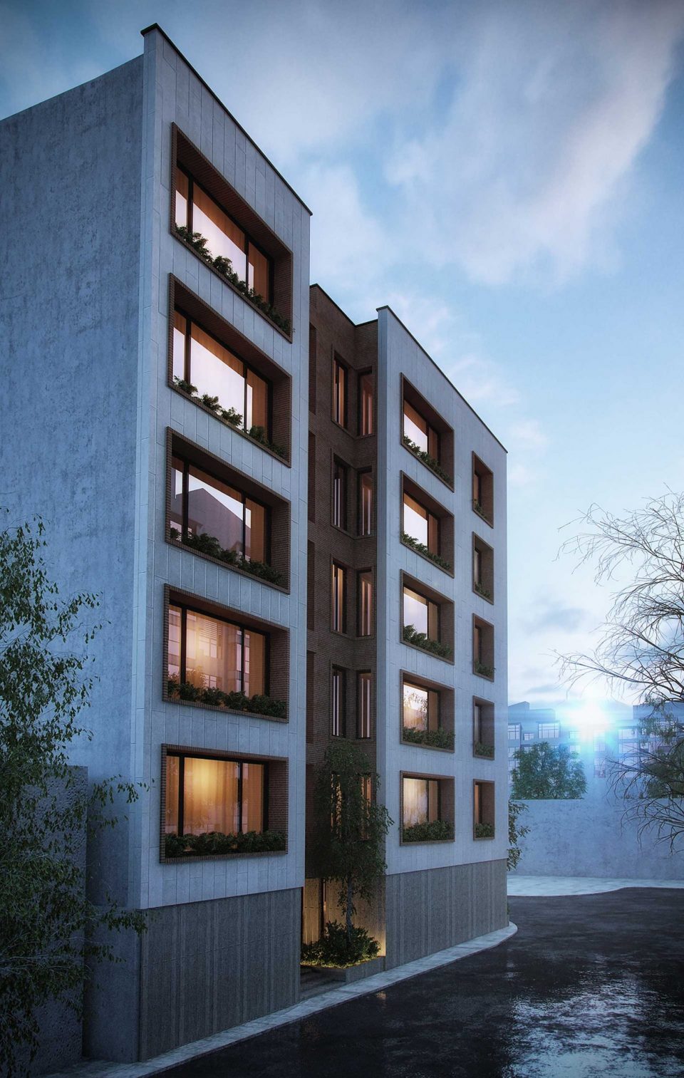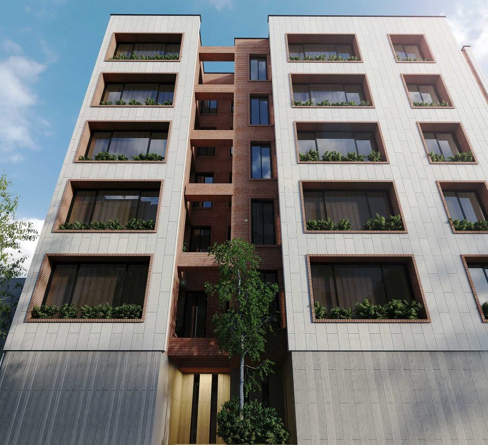 This project started in 2016 and has lasted for 30 months. The area of this project has access from the main roads. By the request of our client, each floor has 3 residential units with 3 different types. For optimal use of light in all spaces, the placement of units was designed to have natural light from the main elevation. Beneficial to prevent the use of voids to supply light for units. We employed different breaks in the facade so that the units have direct natural light. The white surface as the external frame in contrast with the break was used for homogenizing and depth of the facade. Moreover, the gap is used for an inviting feeling in the entrance and lobby. Also, we implied zoning for parking lots for maximum use. In consequence, we were able to benefit from the natural light and indoor green leaf plants to bring nature into it.
