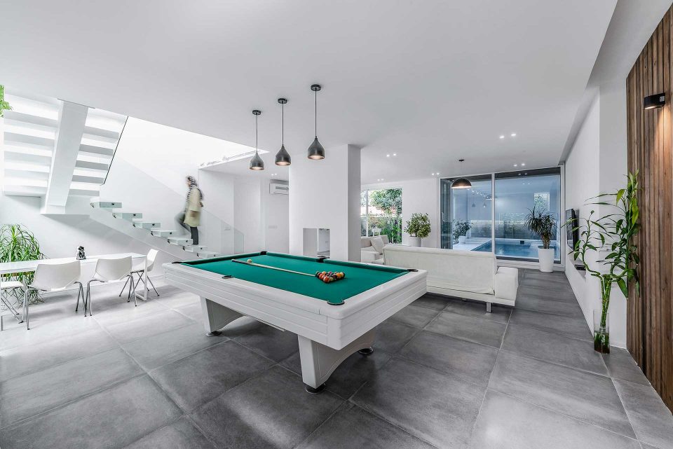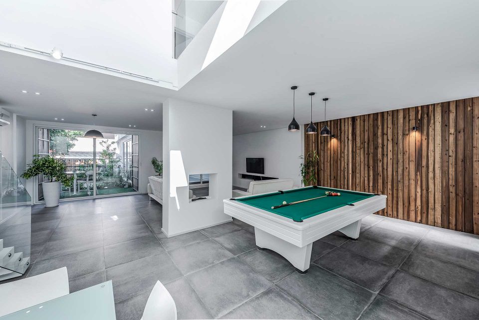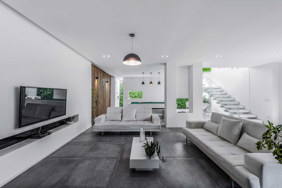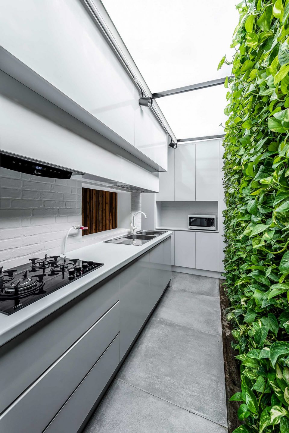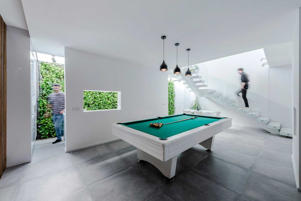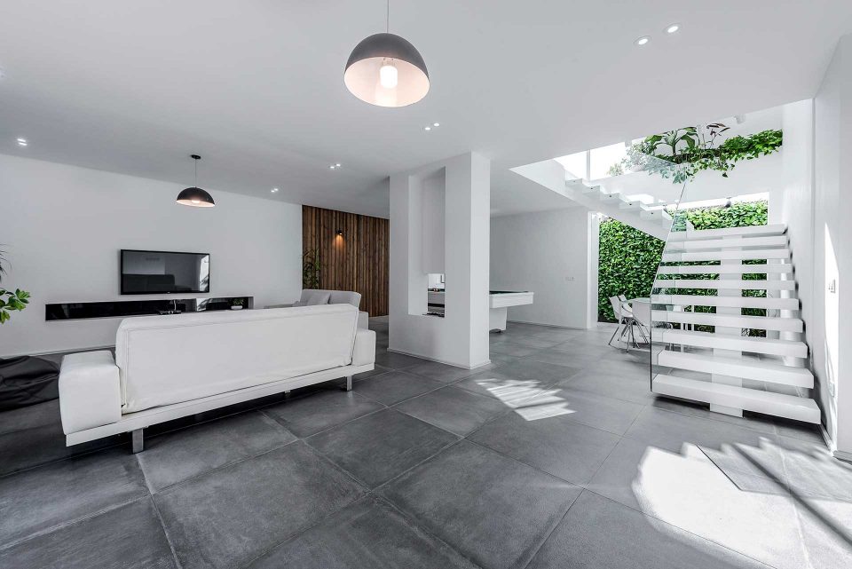 The process of this project, to design to construction, was completed in 13 months in 2017-2018. A reason behind the name of this project is that there was an old building located on a 440 sq block. To cover the construction costs, a 220 sq. a piece of the block was sold. For this reason, this villa was named the 220 (220sq. was left to renovate). The first step was to optimize the old skeleton, then the kitchen was placed behind it. By adding the glass ceiling and green space a new world was brought to life. Skylights were used in different places to provide natural light and sunshine on sunny days.