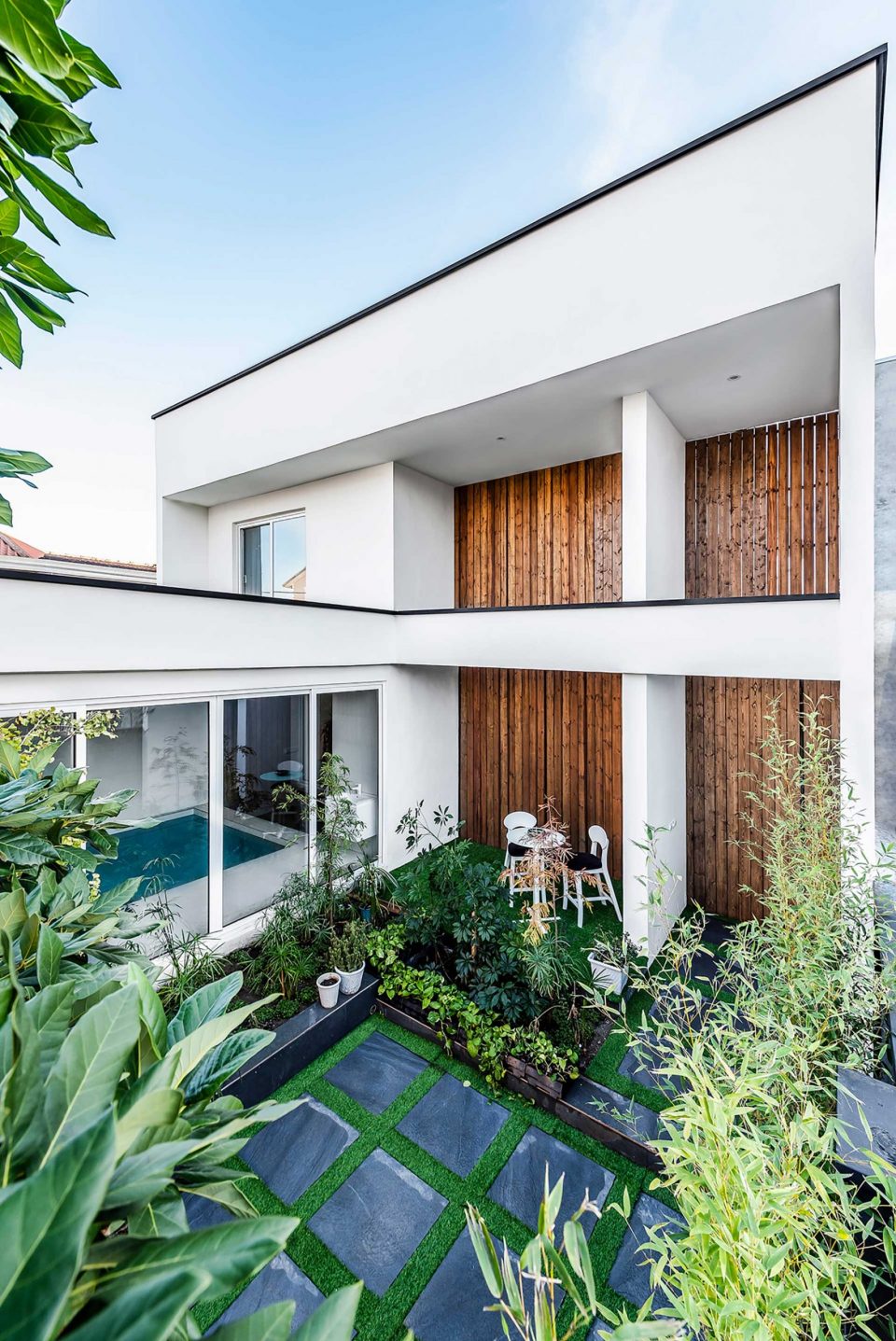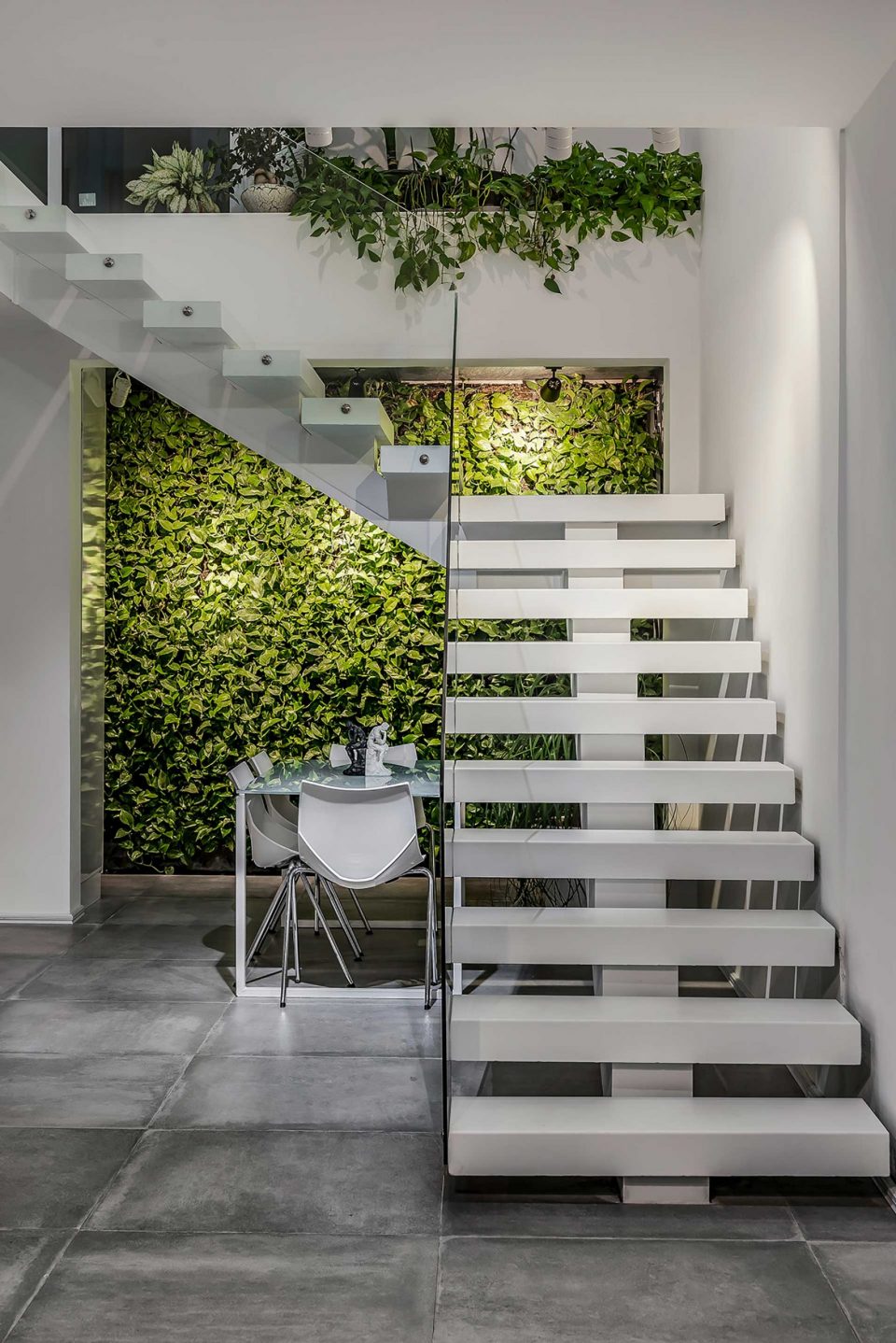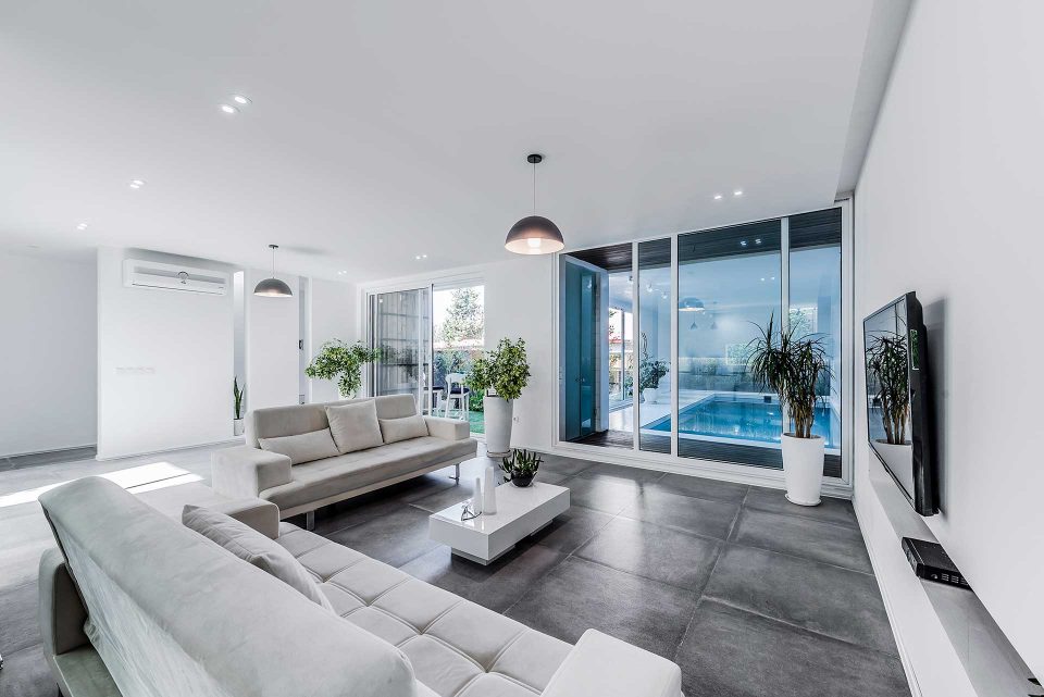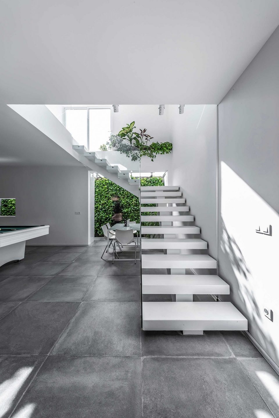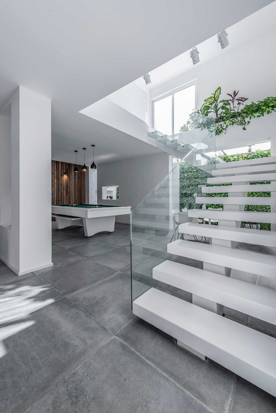 The process of this project, to design to construction, was completed in 13 months in 2017-2018. A reason behind the name of this project is that there was an old building located on a 440 sq block. To cover the construction costs, a 220 sq. a piece of the block was sold. For this reason, this villa was named the 220 (220sq. was left to renovate). The first step was to optimize the old skeleton, then the kitchen was placed behind it. By adding the glass ceiling and green space a new world was brought to life. Skylights were used in different places to provide natural light and sunshine on sunny days.