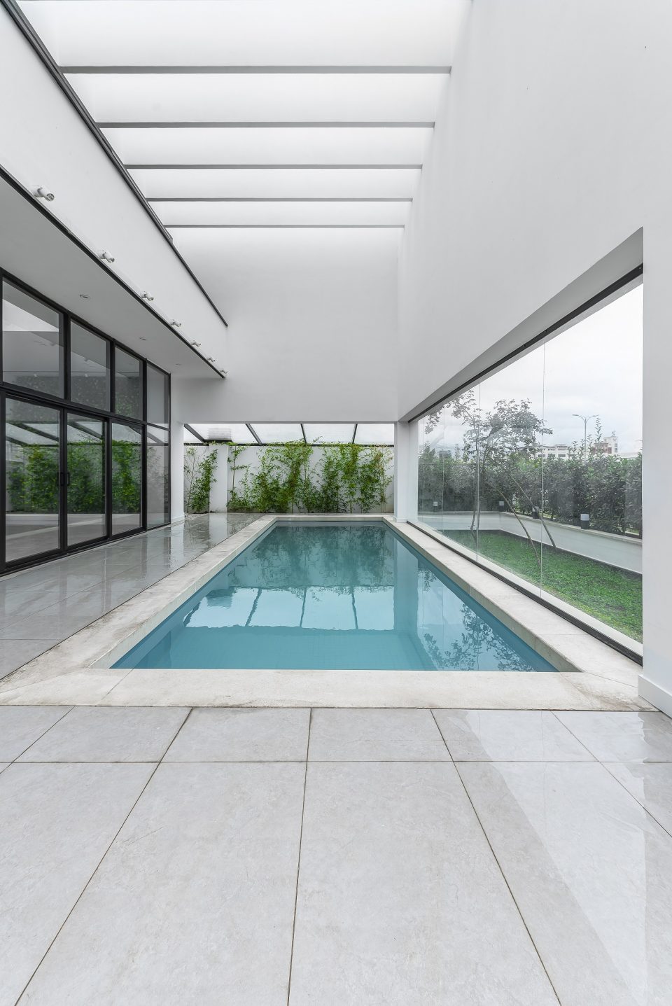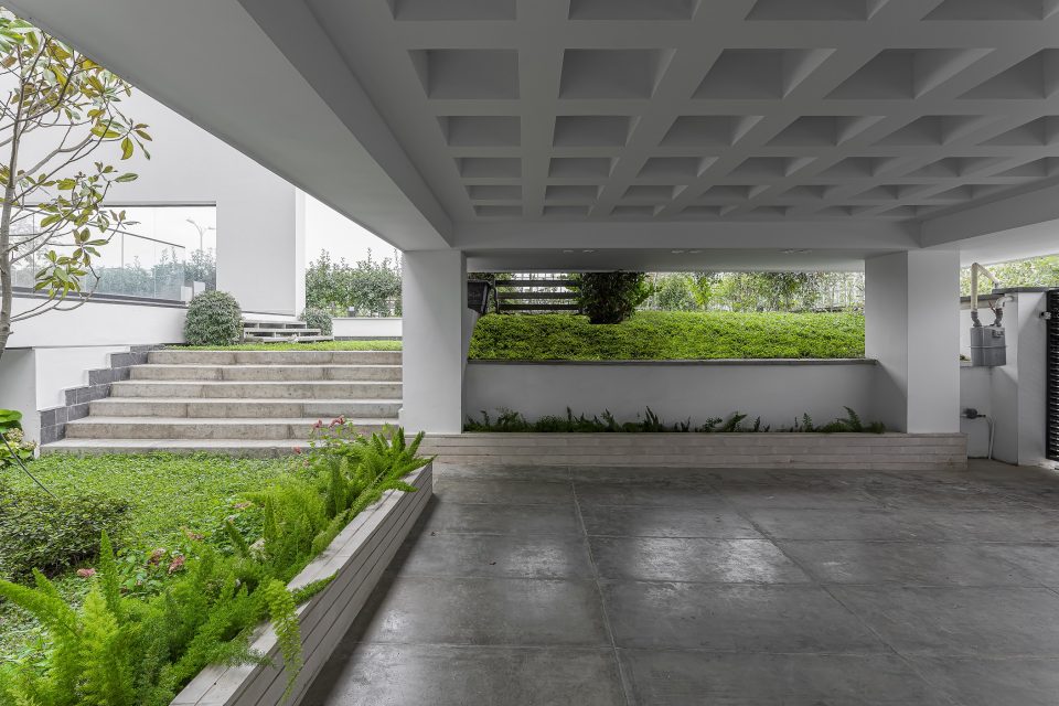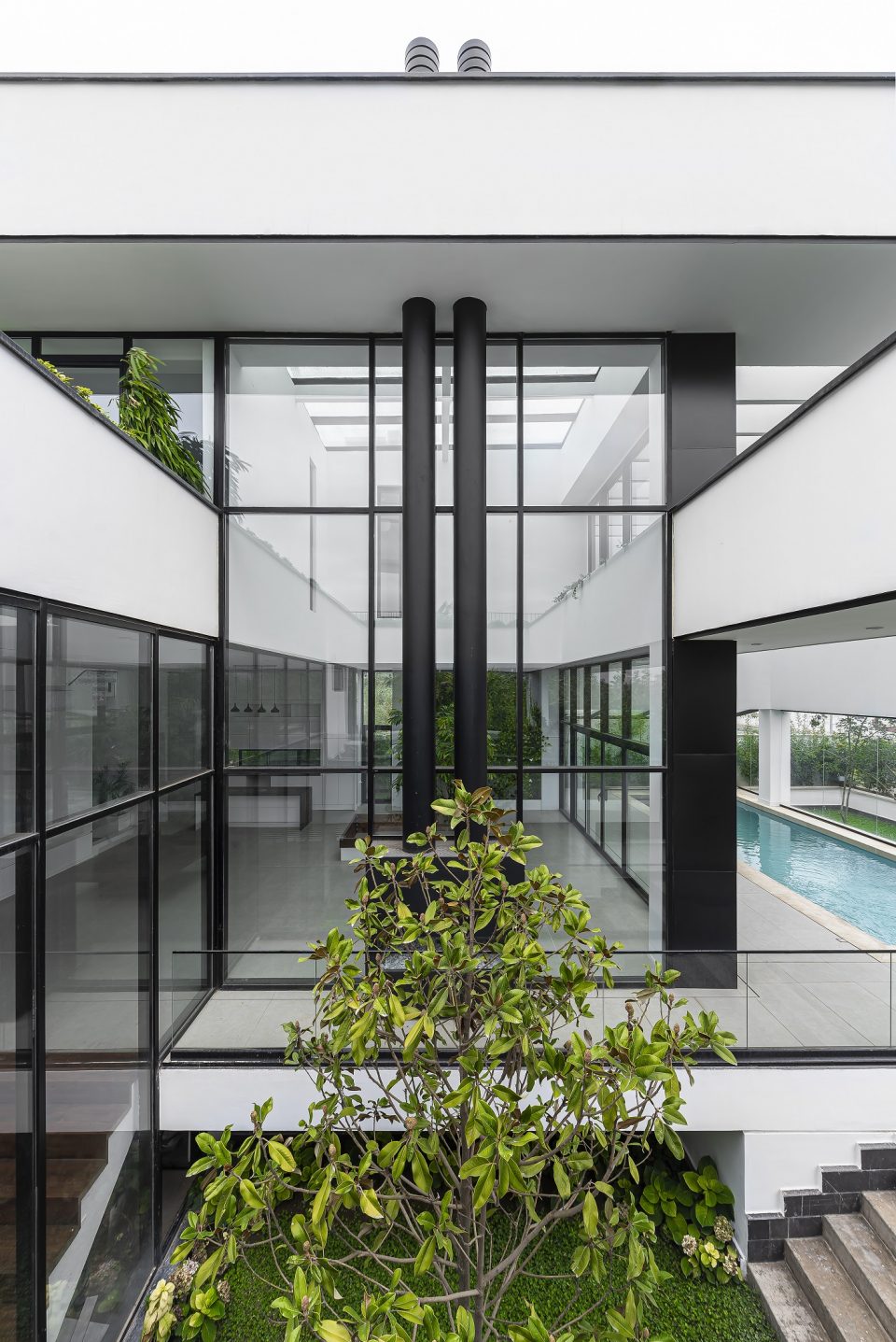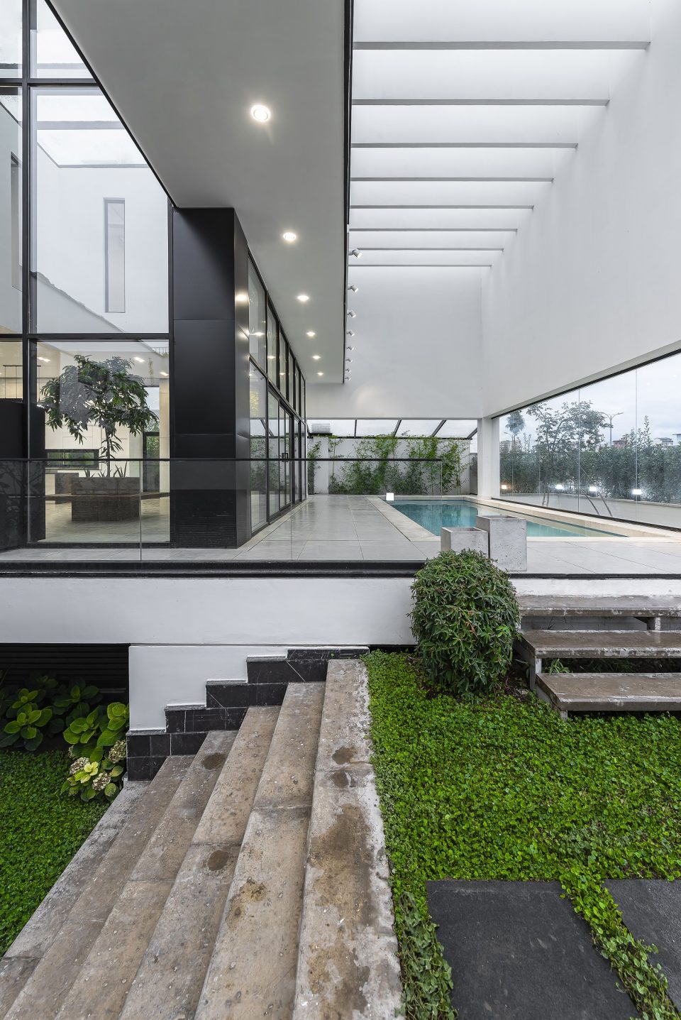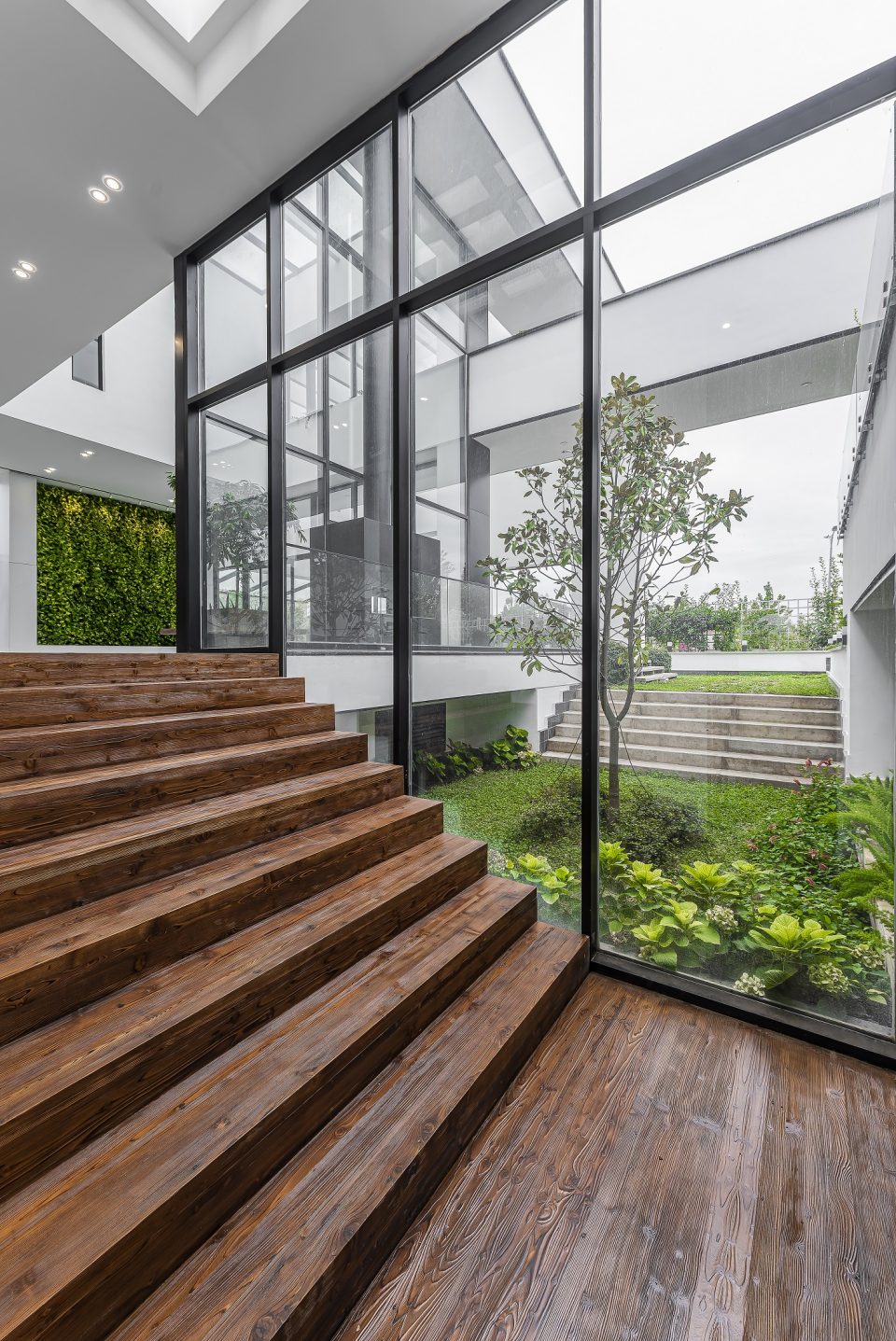 This villa started in 2017 and lasted for 24 months. The concept of this project was based on the maximum use of external and internal green space. In this regard, as the first stage, the split-level floor plan is designed with an external solid facade. The inside space is somehow multi-dimensional, all spaces are connected to each other, especially to the courtyard. Master bedrooms have access to the roof garden. Moreover, the covered pool has access to a garden and skylight to have ventilation and natural light. A shallow transparent water pond is located on the roof garden. Furthermore, it can be said that the pond was built over the main staircase ceiling. So, if you look up at the ceiling or going up stairs on a sunny day, you will amaze by the refraction of the water.
