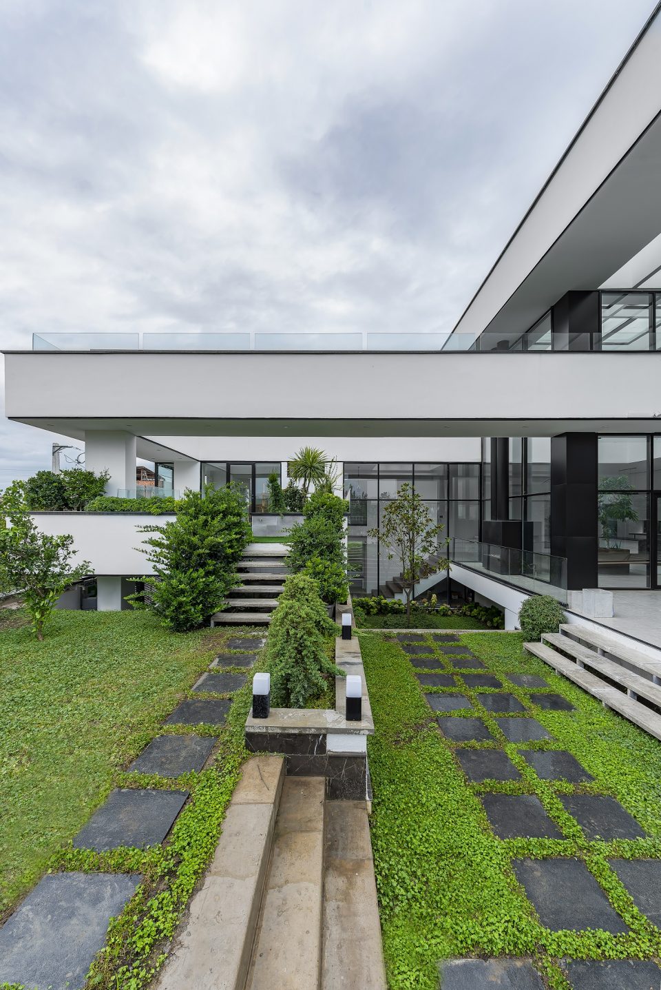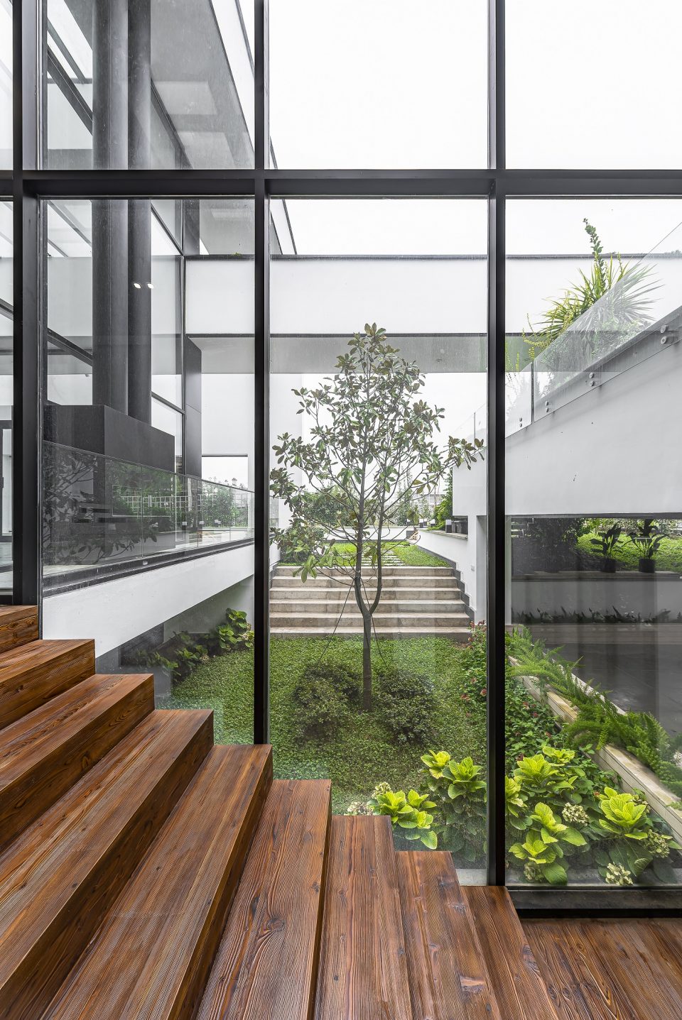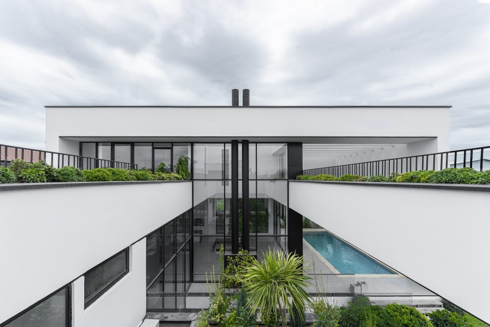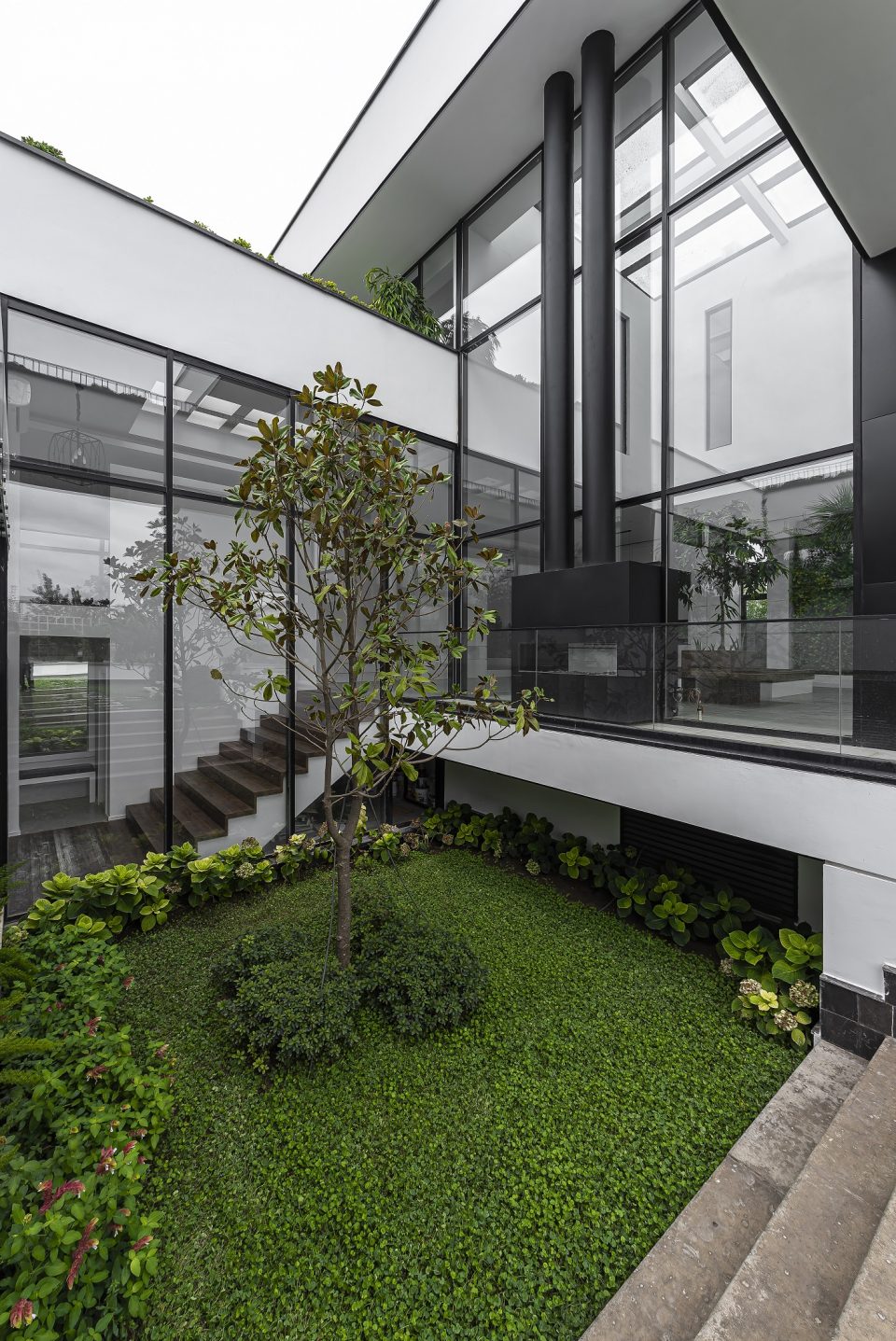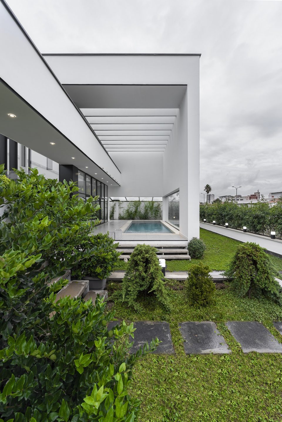 This villa started in 2017 and lasted for 24 months. The concept of this project was based on the maximum use of external and internal green space. In this regard, as the first stage, the split-level floor plan is designed with an external solid facade. The inside space is somehow multi-dimensional, all spaces are connected to each other, especially to the courtyard. Master bedrooms have access to the roof garden. Moreover, the covered pool has access to a garden and skylight to have ventilation and natural light. A shallow transparent water pond is located on the roof garden. Furthermore, it can be said that the pond was built over the main staircase ceiling. So, if you look up at the ceiling or going up stairs on a sunny day, you will amaze by the refraction of the water.